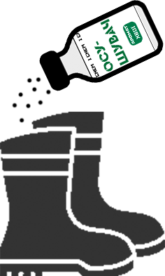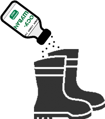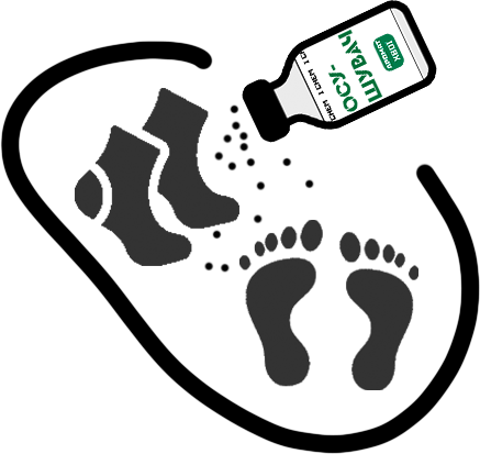 Щоденне застосування: рівномірно нанести невелику кількість осушувача на стопу та пальці ніг. Потерти їх порошком, видалити воду та забруднення. Нанести повторно. Одягти шкарпетки. Насипати невелику кількість осушувача всередину взуття та струшуванням рівномірно розподілити по всій внутрішній поверхні. Зайве витрусити залишок. Взутись.